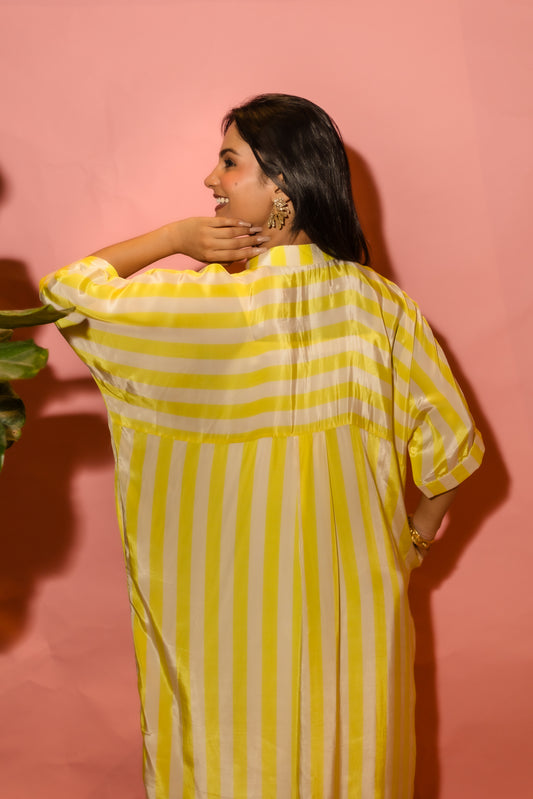 Yellow Stripe Shirt Dress With Slip