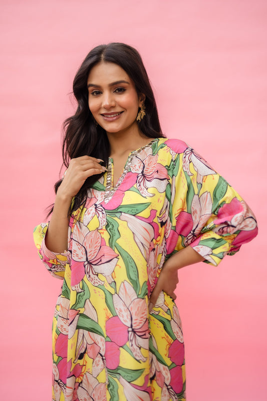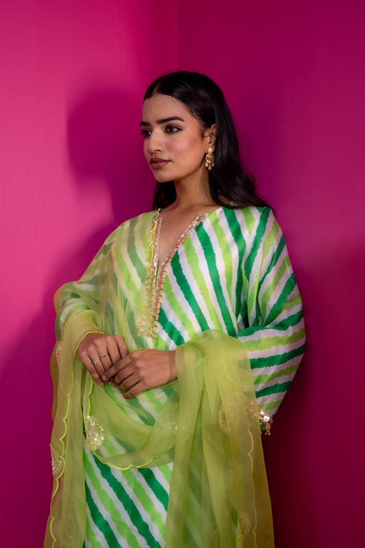 Stripe Baggy Kaftan Kurta With Floret Harmony Pants