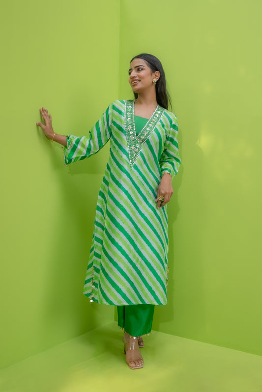 Hariyali Leheriya Kaftaan - Kurta Set