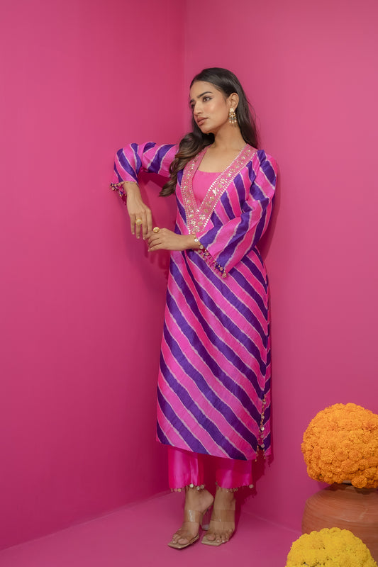 Saanjh Gulabi Nagari Leheriya - Kurta Set