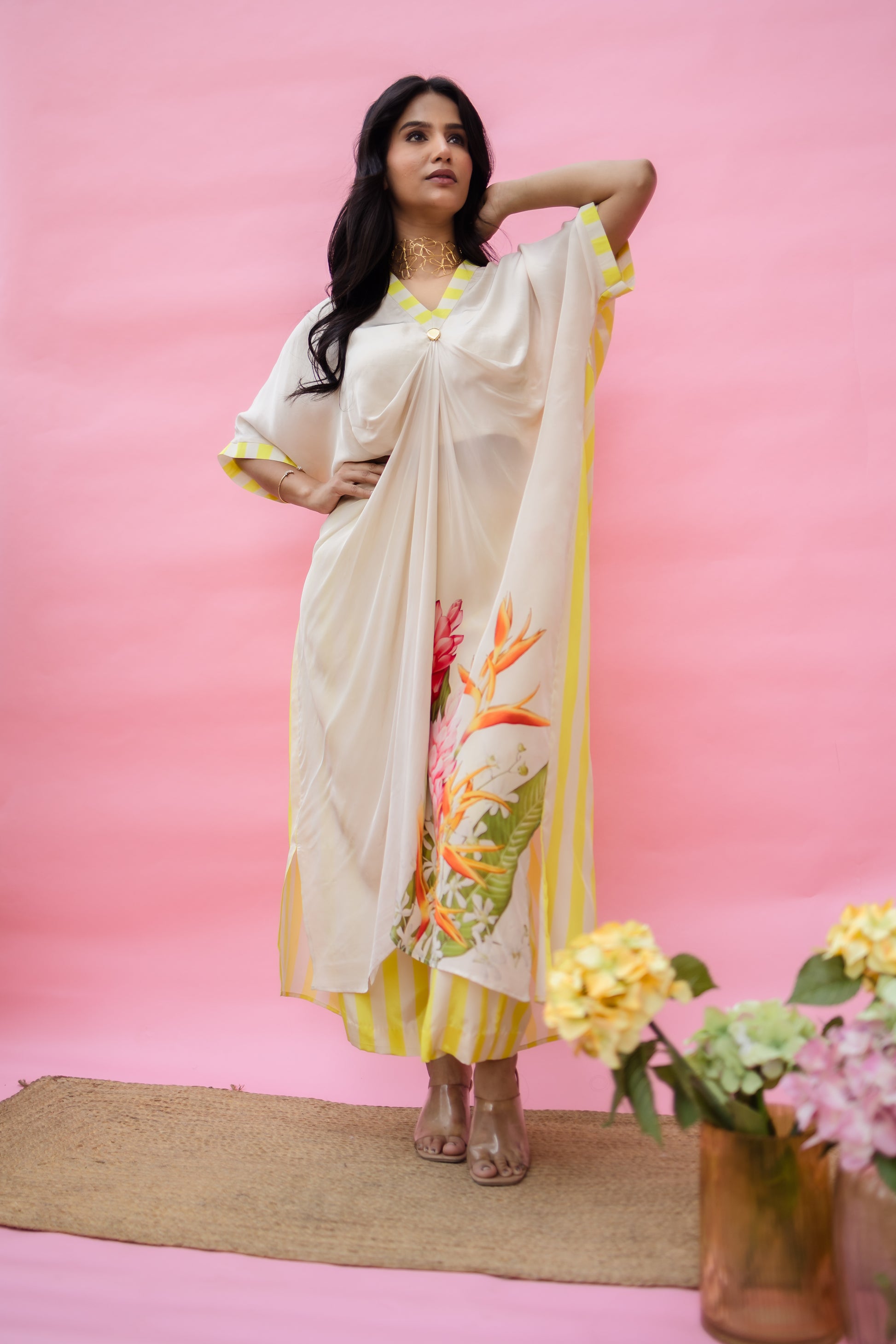 Radiate soft glamour in the Floret Harmony Gather Skirt with Shimmer Cape Top—a dreamy ensemble where delicate florals meet a touch of sparkle. The flowing gather skirt offers beautiful movement and feminine flair, while the shimmer cape top adds an ethereal layer of shine and sophistication.