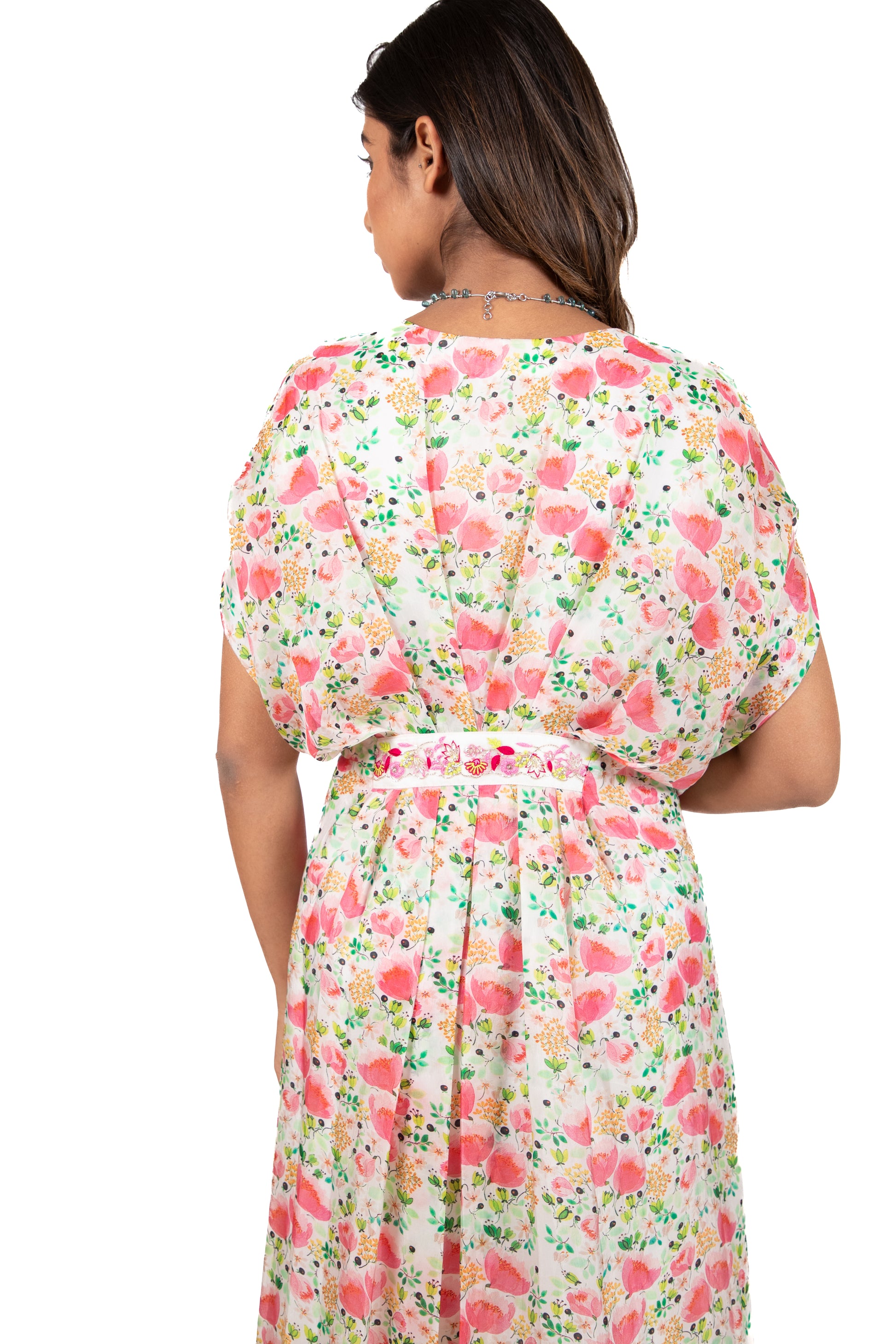 Immerse yourself in the beauty of blooming clusters adorning the front, harmonizing seamlessly with the chic black pleats. Perfect for those who appreciate the grace of flowers and the timeless allure of pleats.