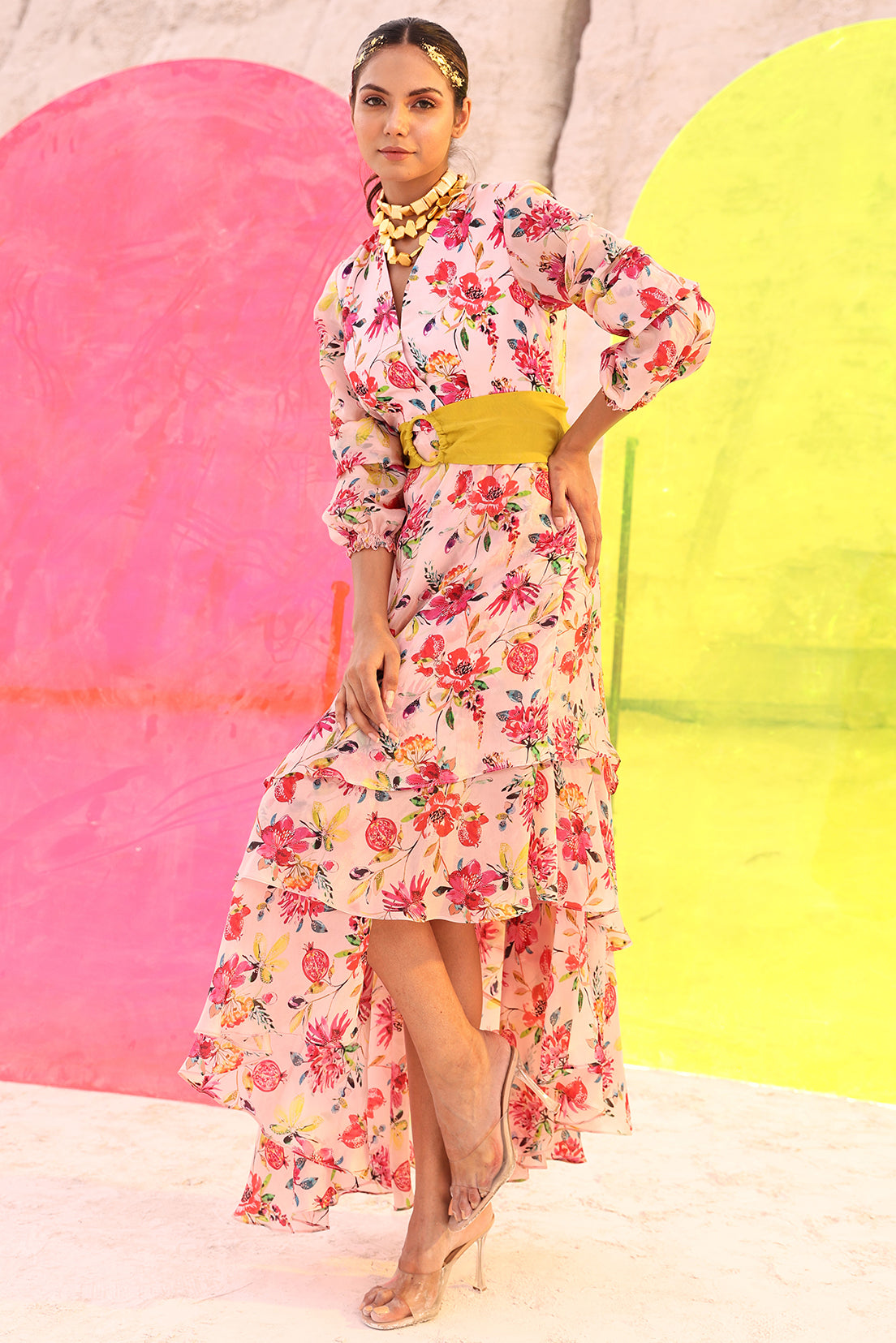 This enchanting ensemble combines sophistication and grace in every layer, featuring a harmonious blend of delicate hues and exquisite design. Elevate your style with this chic dress that effortlessly captures the essence of modern femininity.